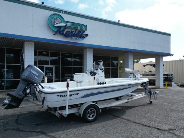 The 2005 19′ Ranger 2000 Bay powered by a Yamaha 150 HP outboard delivers classic bay boat performance with shallow-water capability and reliable power — a solid choice for inshore fishing and family outings alike.