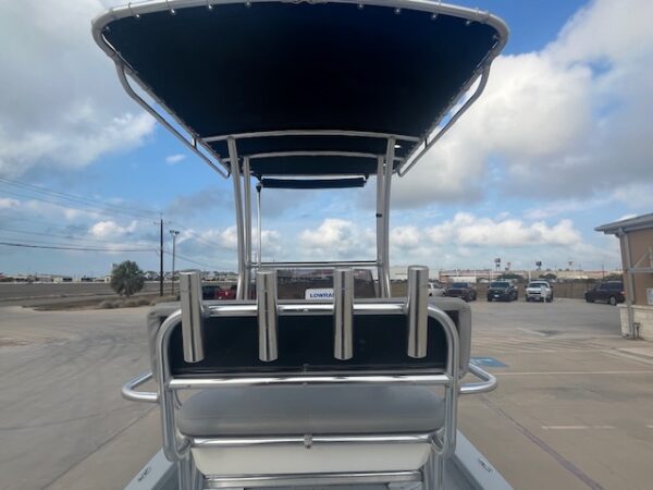 - Leaning Post with Backrest – Comfortable helm seating with additional rod holders.