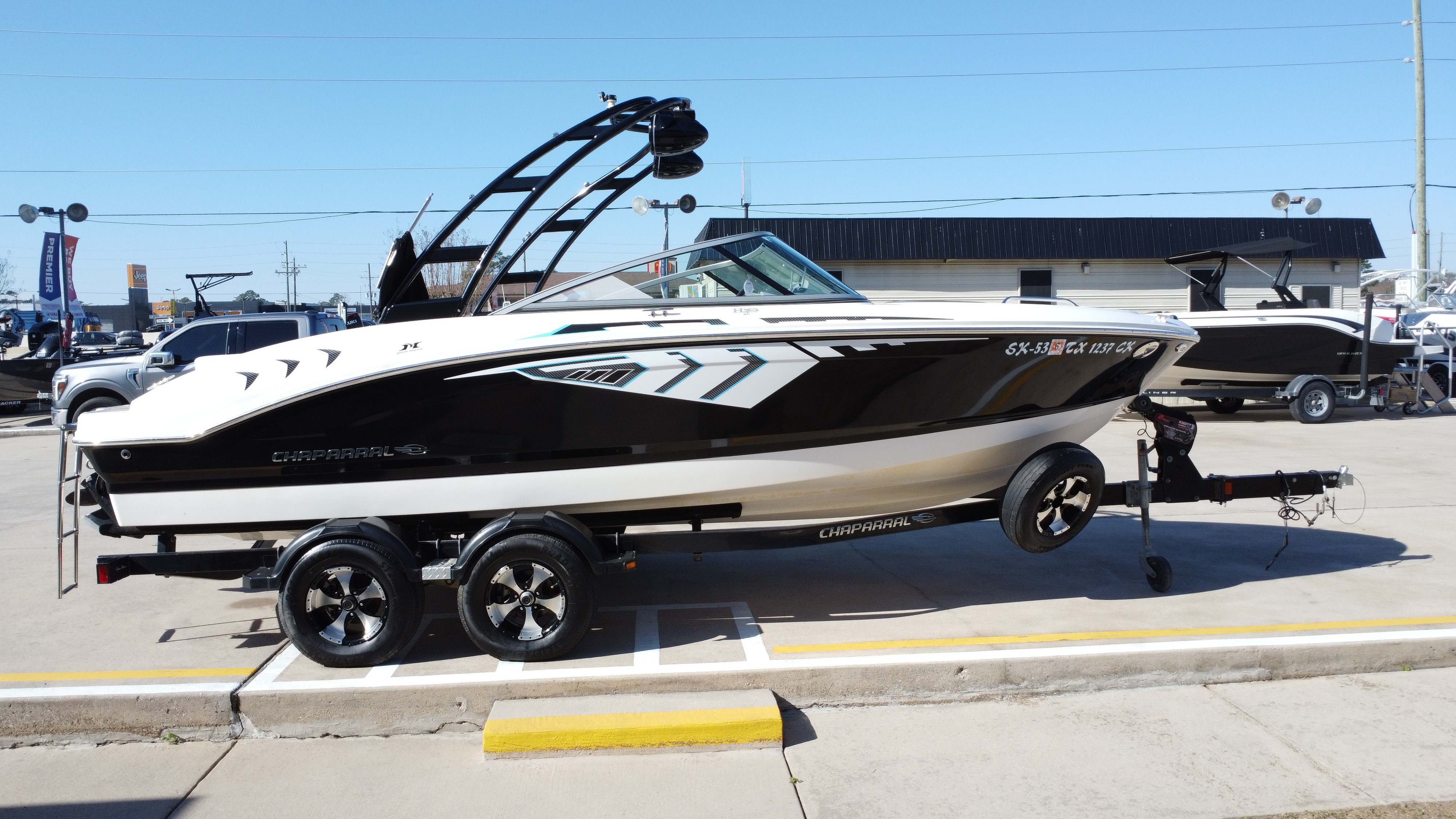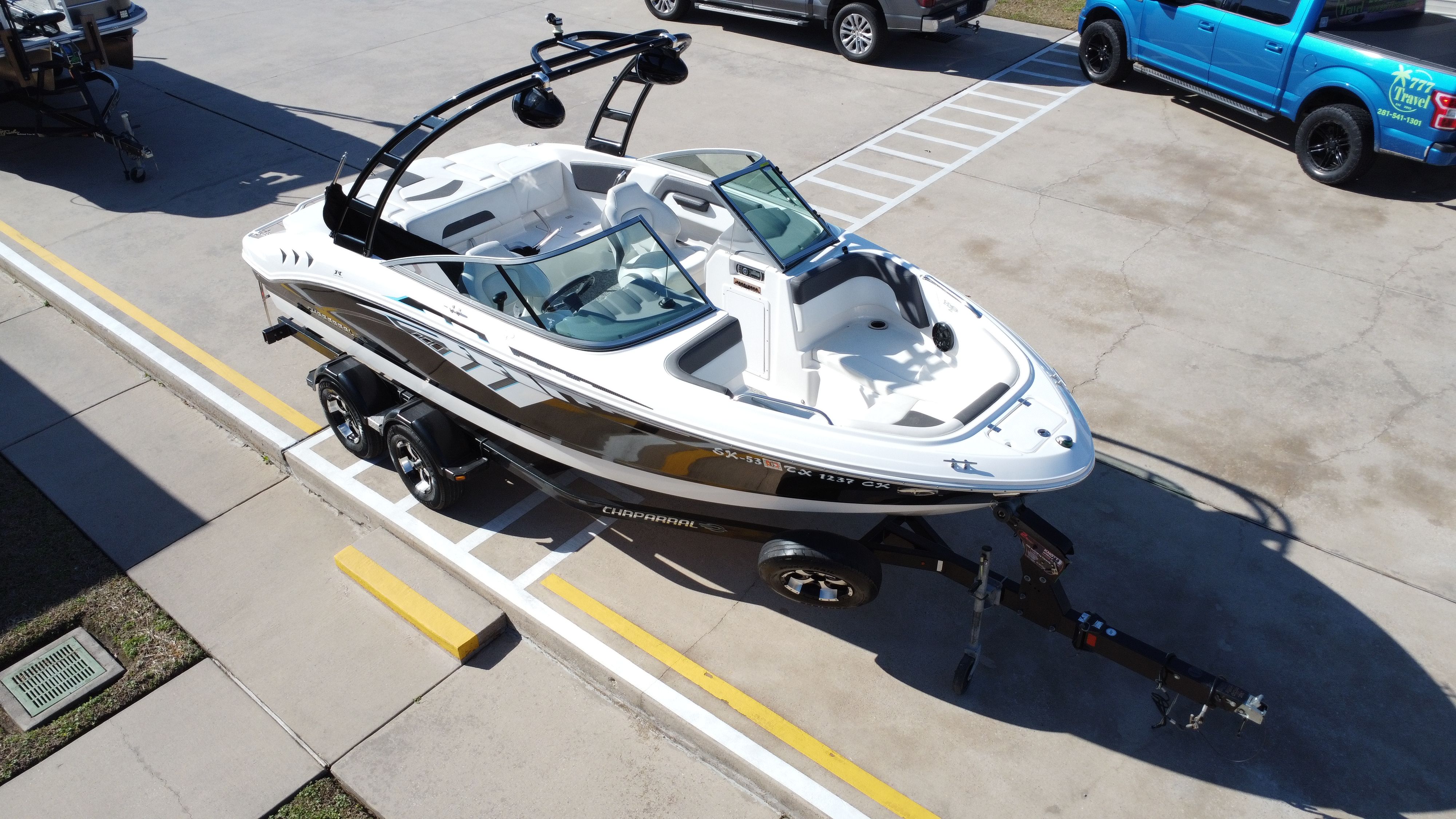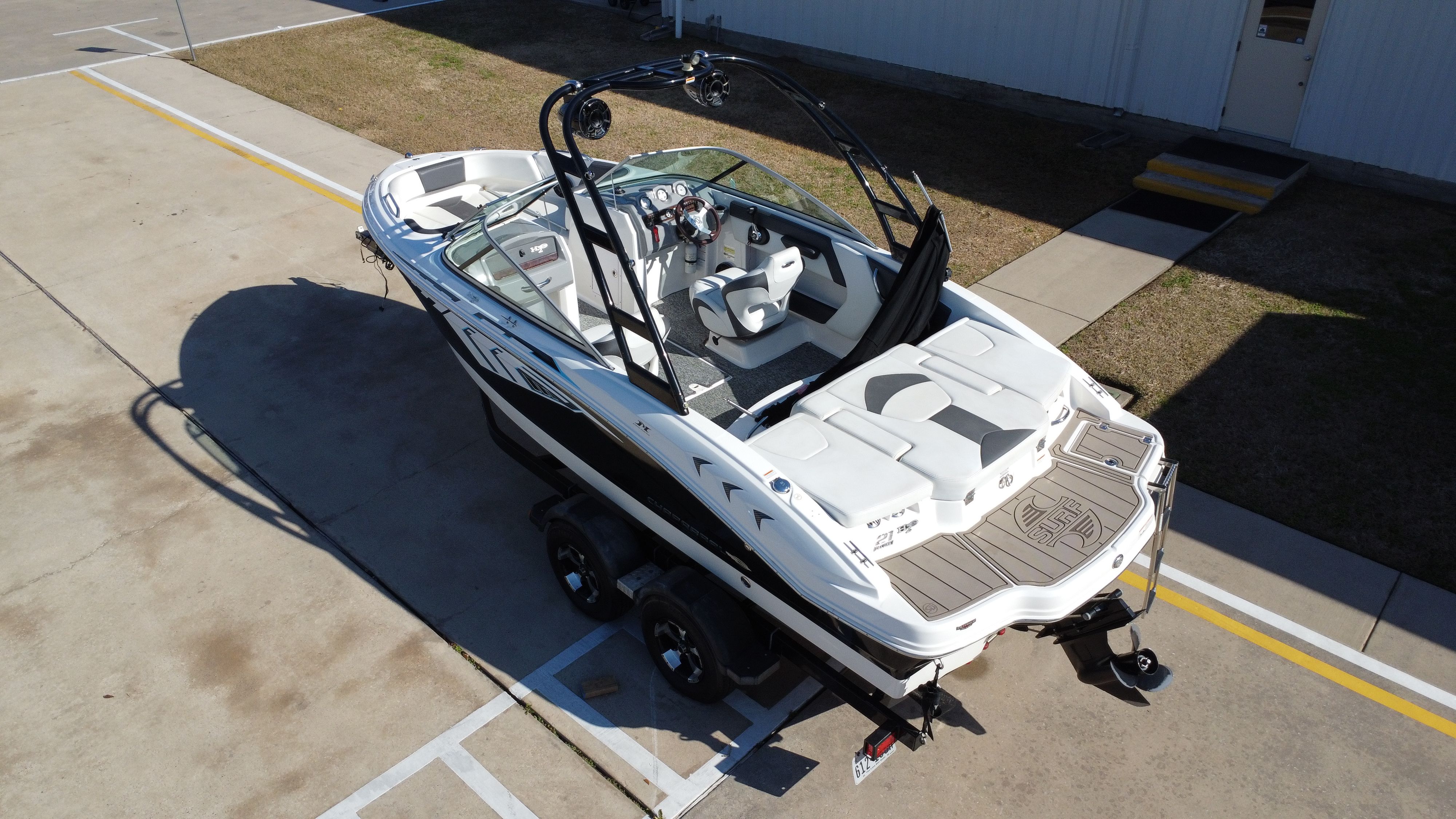 Clean lines, sporty styling, and the added wake tower make this Chaparral a great all-around sport boat ready for family fun and watersports adventures.