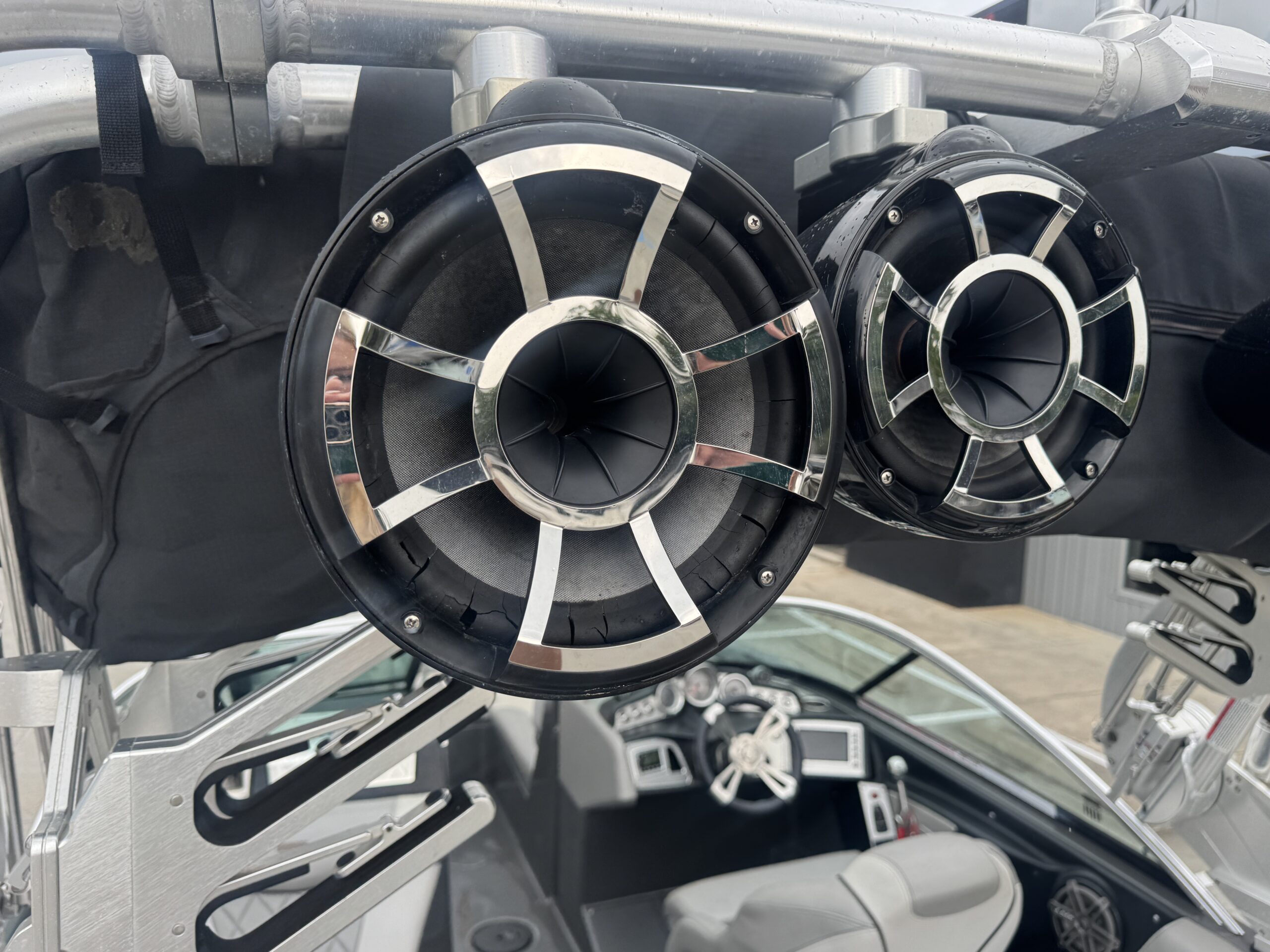 The iconic tower is built for both function and style, typically equipped with board racks, tower speakers, and bimini top for shade—perfect for keeping the energy high while protecting from the sun. A high-end sound system ensures your favorite music carries across the water.