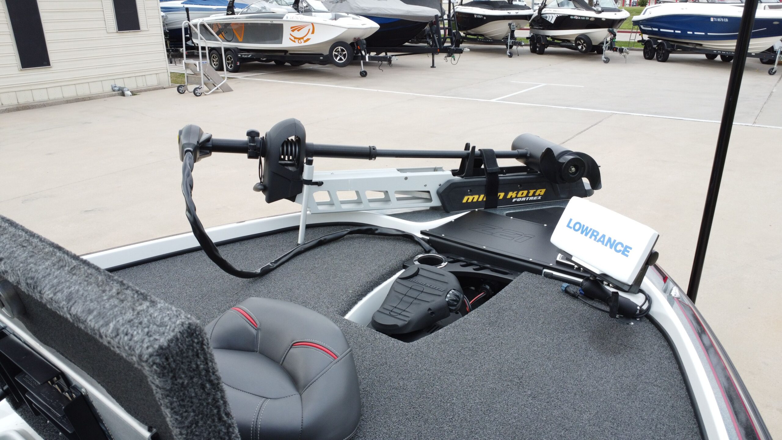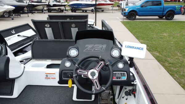 - Factory-installed Minn Kota® Maxxum® 24 V trolling motor (typically 80 lb thrust w/42″ shaft) — standard on most base Z21s