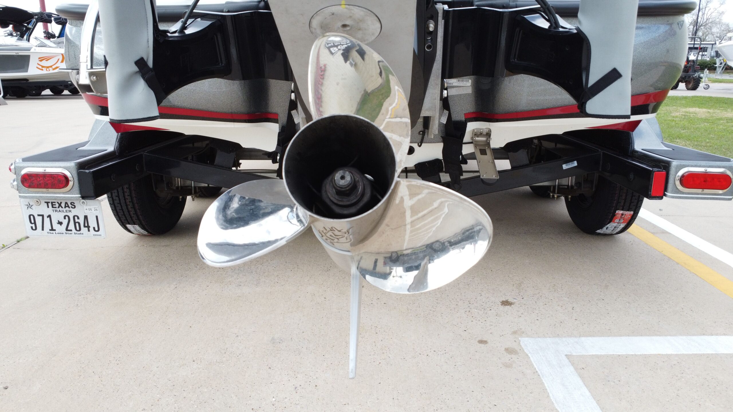 - Tandem-axle trailer with color-matched fiberglass fenders