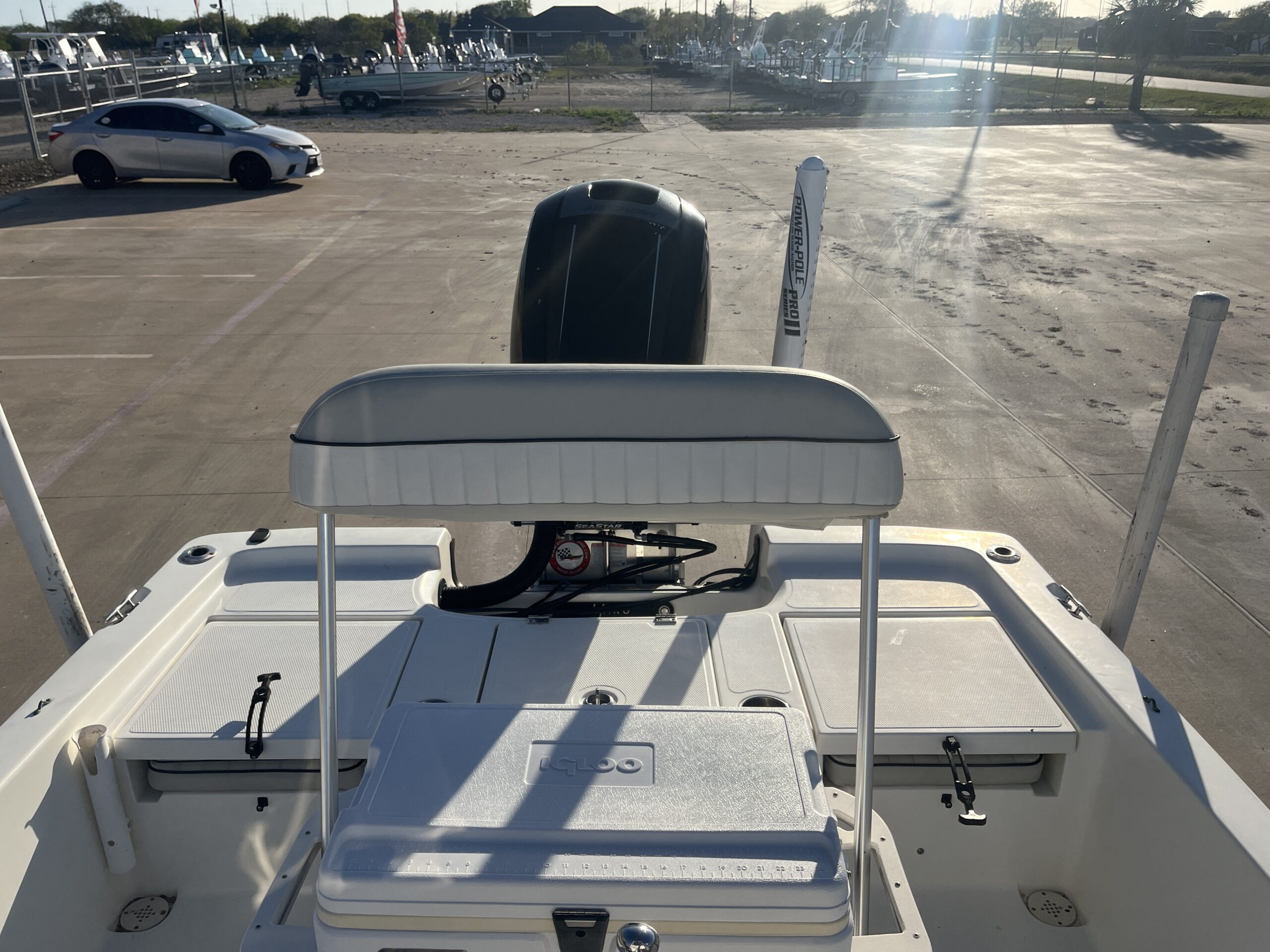 - Leaning Post Helm Seating – Comfortable support while running or fishing.