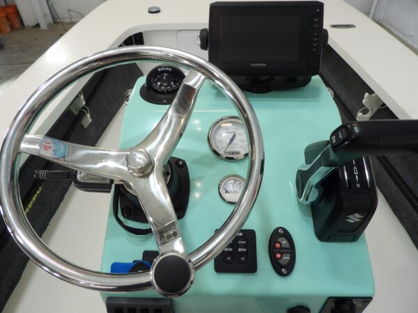 Simple, clean center console layout for maximum fishing space