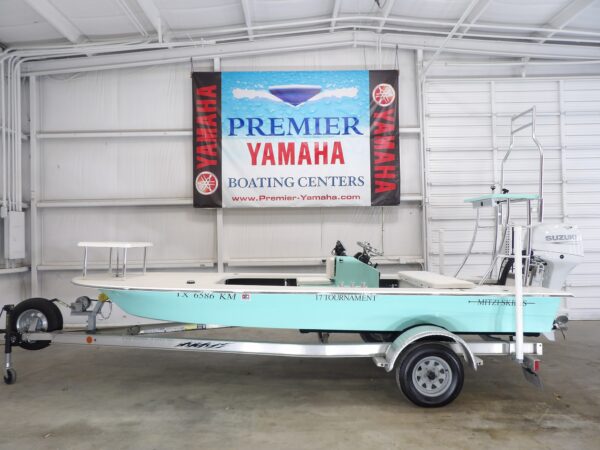 The Mitzi 17 Tournament is widely respected among serious inshore anglers for its efficient hull design, shallow draft, and quiet operation when stalking fish in tight water.