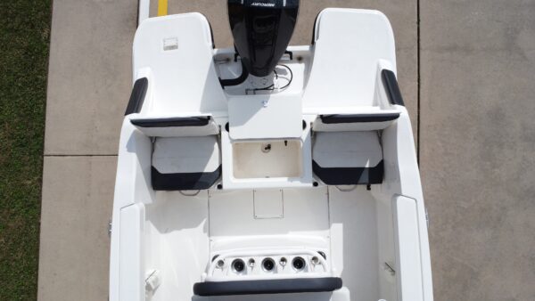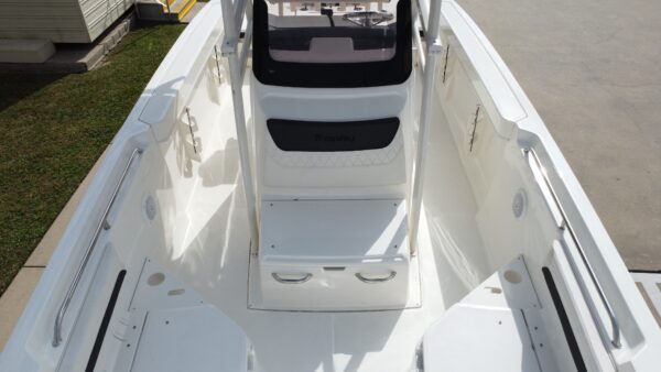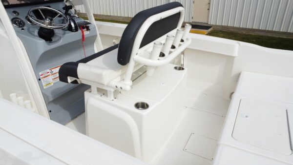 The Trophy T-22’s deep-V fiberglass hull provides a stable, dry ride across chop and swells, while the thoughtfully designed layout maximizes deck space for both anglers and passengers. A spacious bow area easily converts between lounging and casting zones, and the self-bailing cockpit keeps water moving overboard for fast cleanup after a day on the water.
