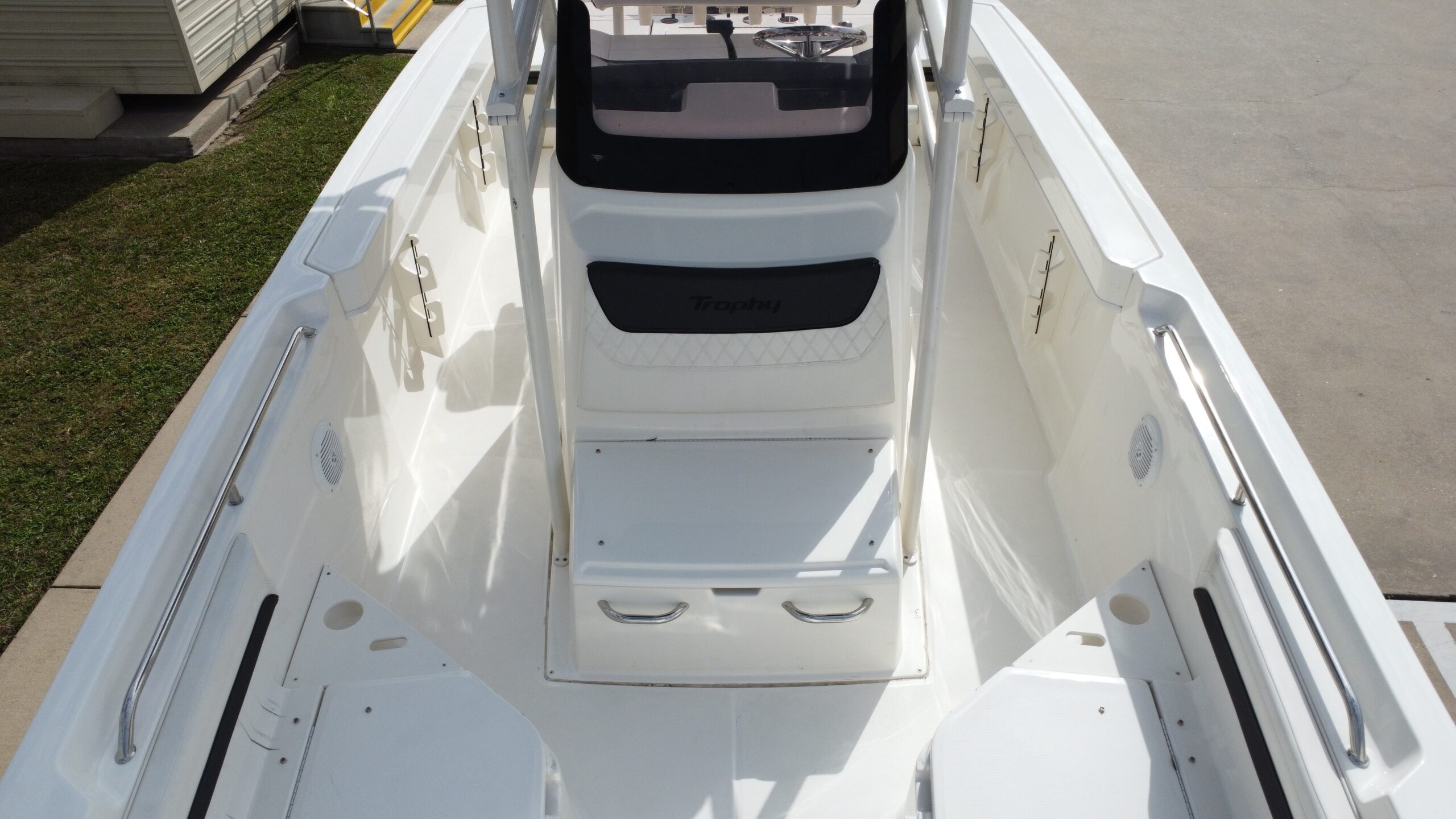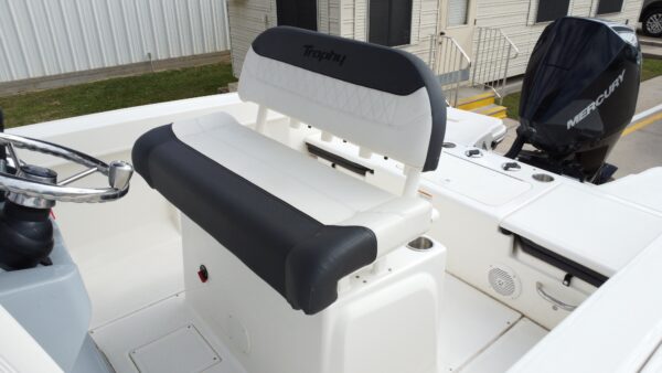 At the helm, classic Trophy practicality meets modern convenience. The center console offers excellent visibility, intuitive controls, and room for optional electronics and displays — ideal for navigation, fishfinding, and entertainment upgrades. Premium fixtures like rod holders, ample storage lockers, and comfortable seating keep every trip enjoyable and organized.