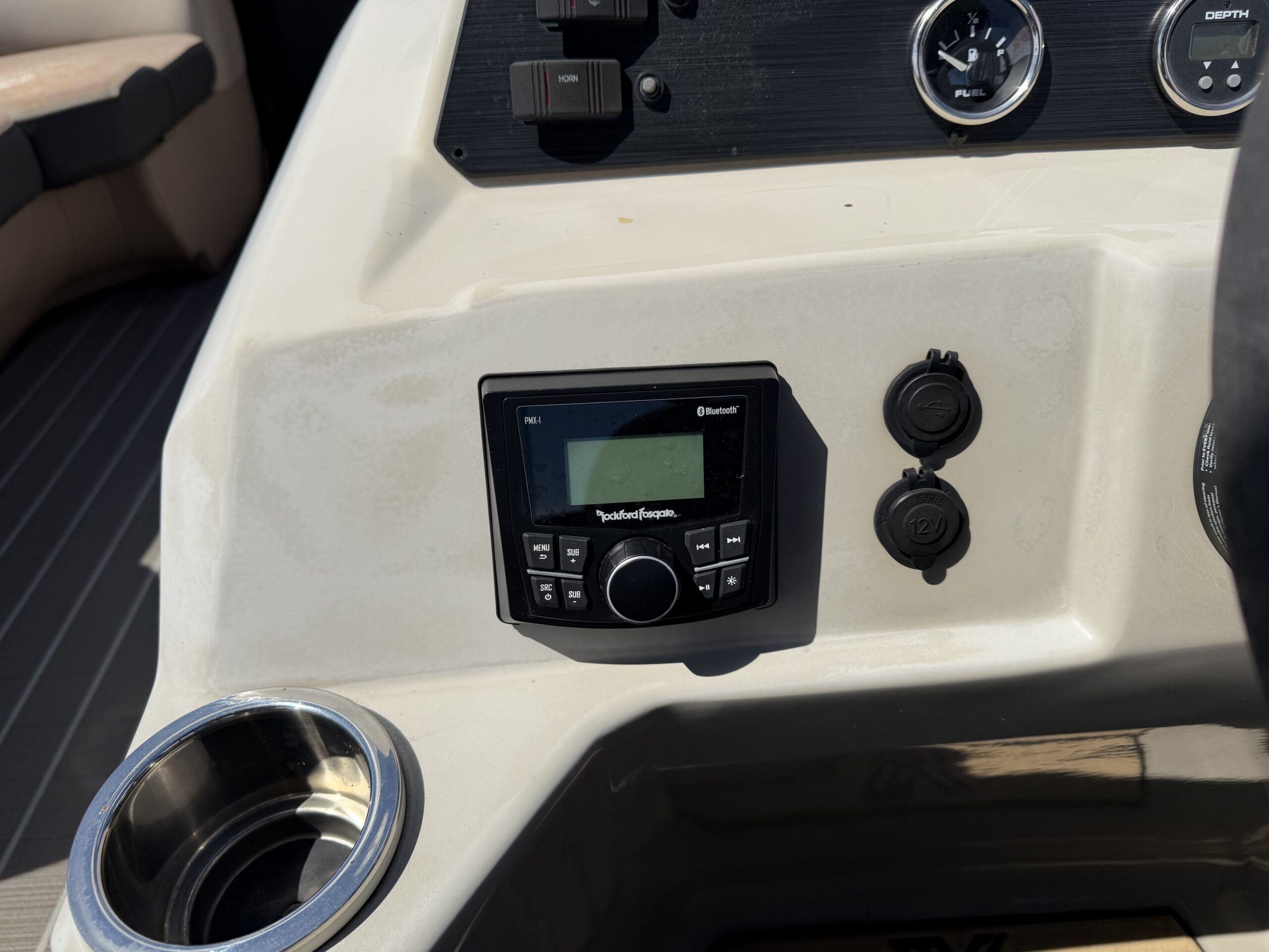 - Rockford Fosgate Head Unit & Speakers – Premium marine audio system with powerful, clear sound