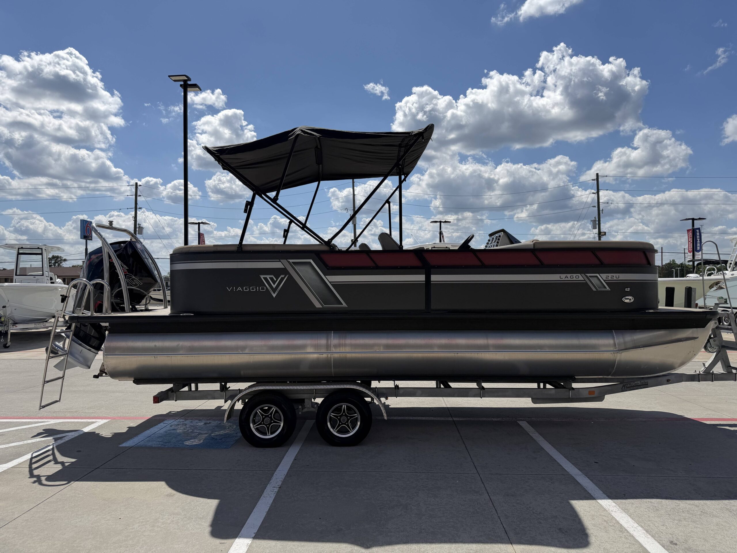 The 2022 Viaggio Lago L22U is a versatile and stylish tri-toon designed for smooth cruising, entertaining, and performance on the water. Powered by a Mercury 200 Pro XS, this boat delivers strong acceleration, excellent top-end speed, and proven reliability. With upgraded features and a durable tri-toon setup, this Lago L22U is ready for everything from relaxing family days to pulling tubes with ease.