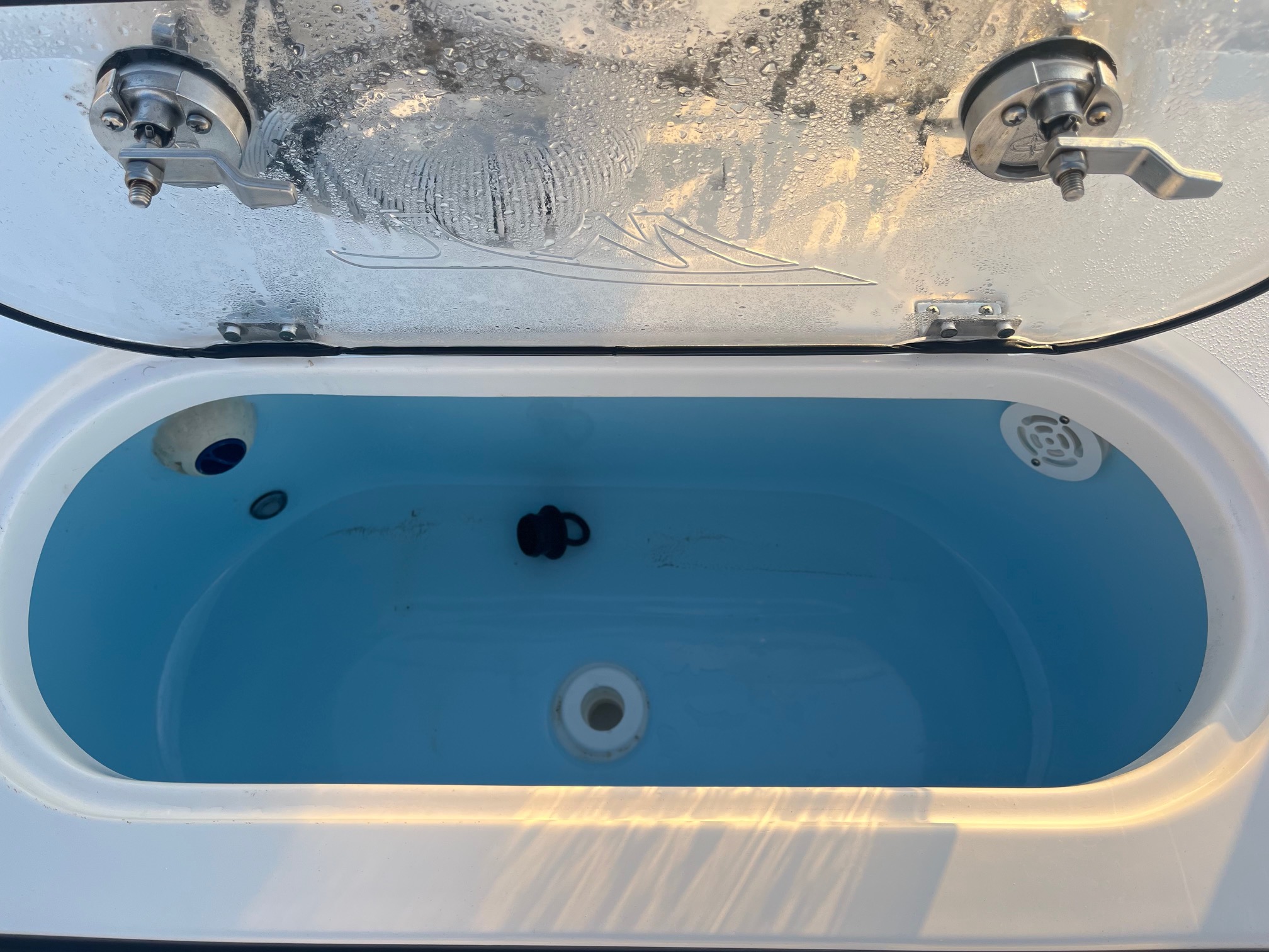 - Center livewell with clear viewing lid + additional storage/livewell capacity