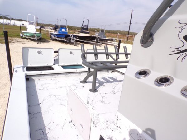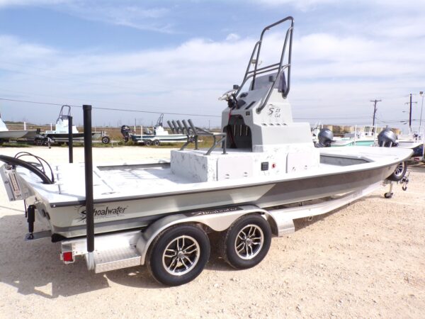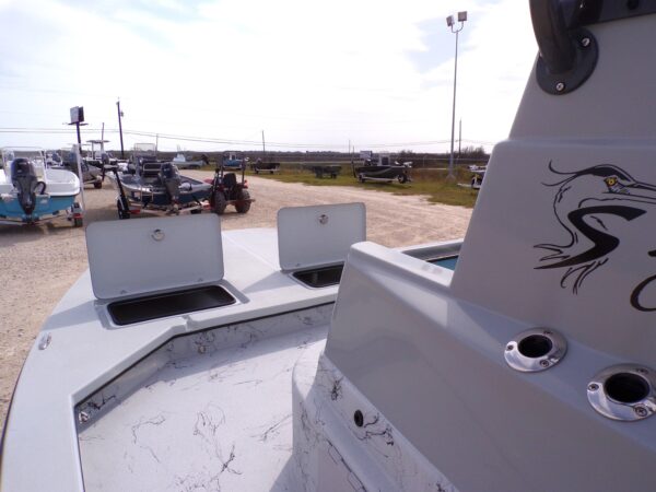 The 2025 Shoalwater 23 Cat is a 23-foot 8 inch catamaran-style bay boat designed for anglers who demand performance, versatility, and premium features. Powered by a Yamaha engine, this model features an elevated console, remote fill & cylinder, a livewell pump with screen, livewell overflow pipe, and battery switch, making it perfect for inshore fishing and recreational boating.