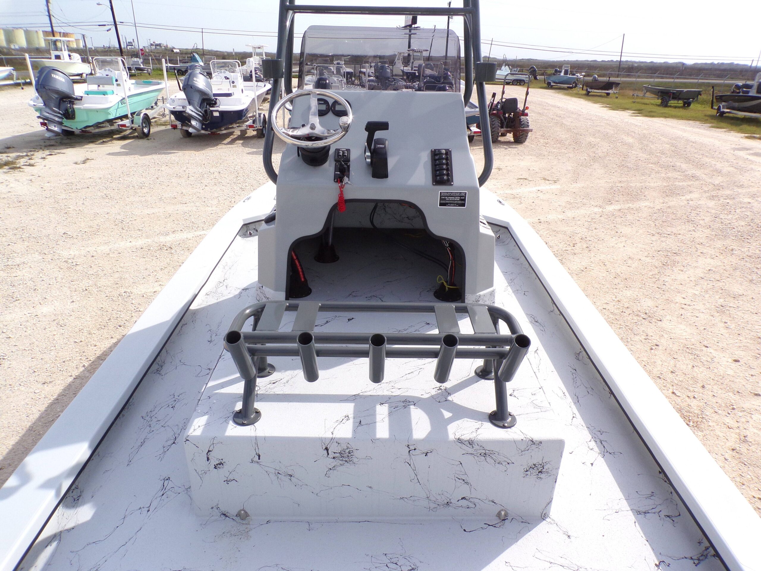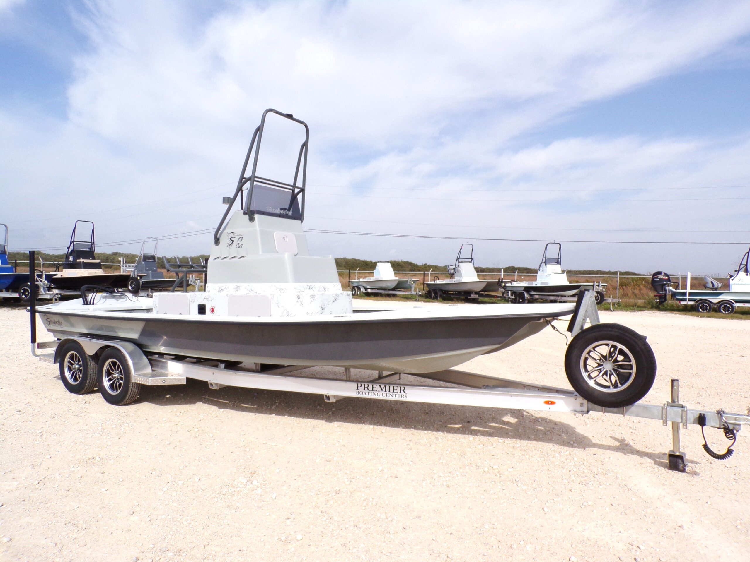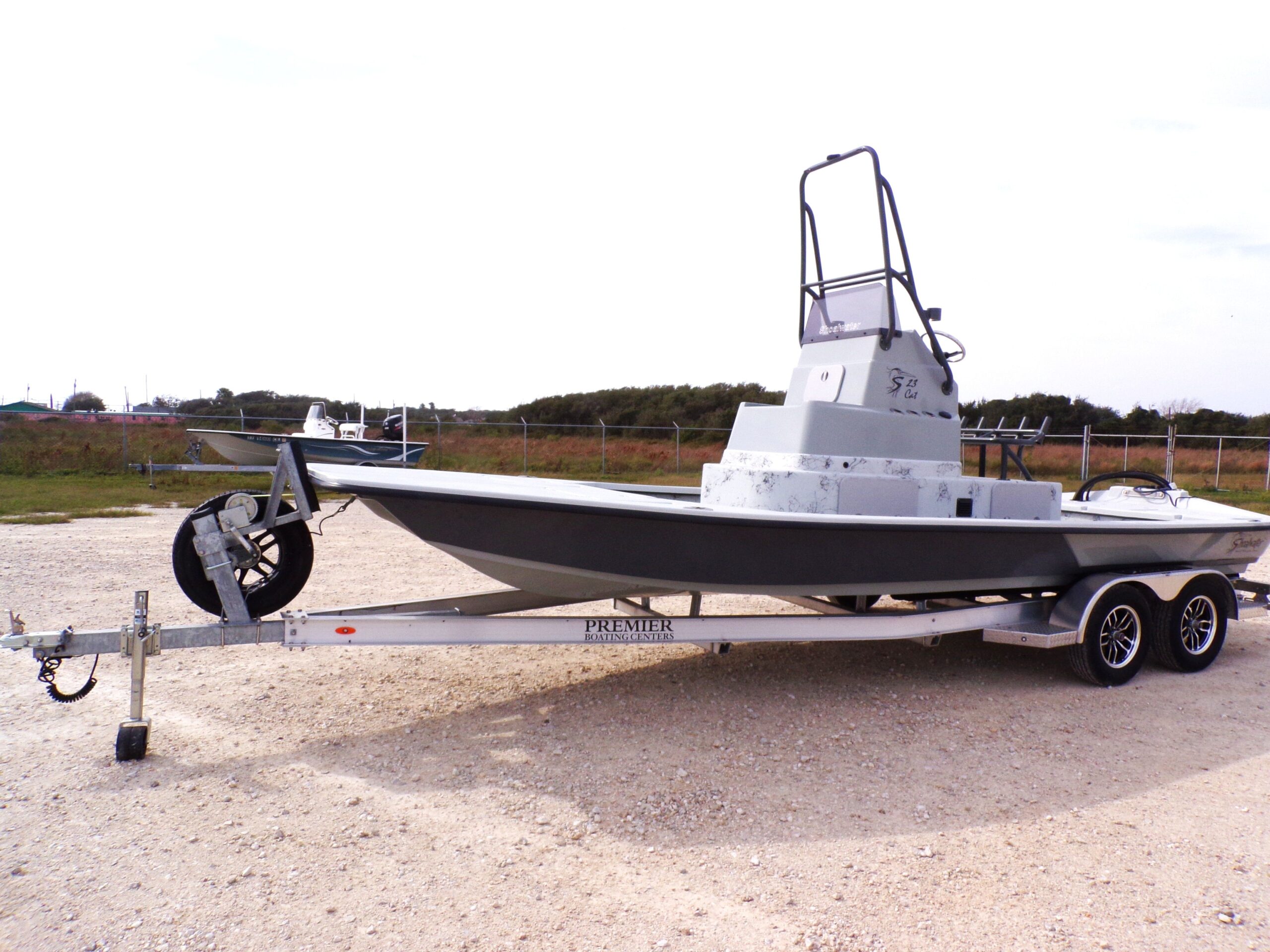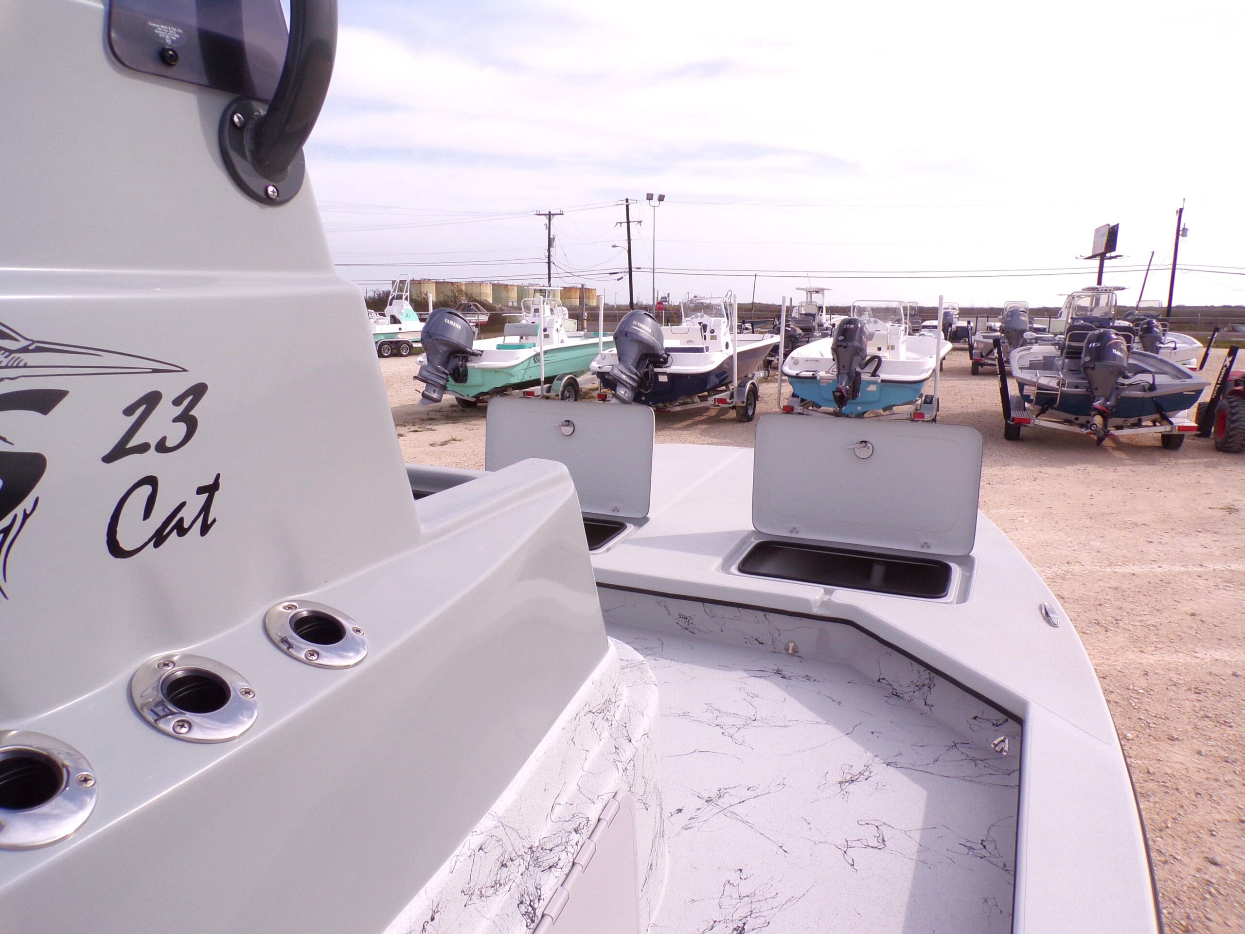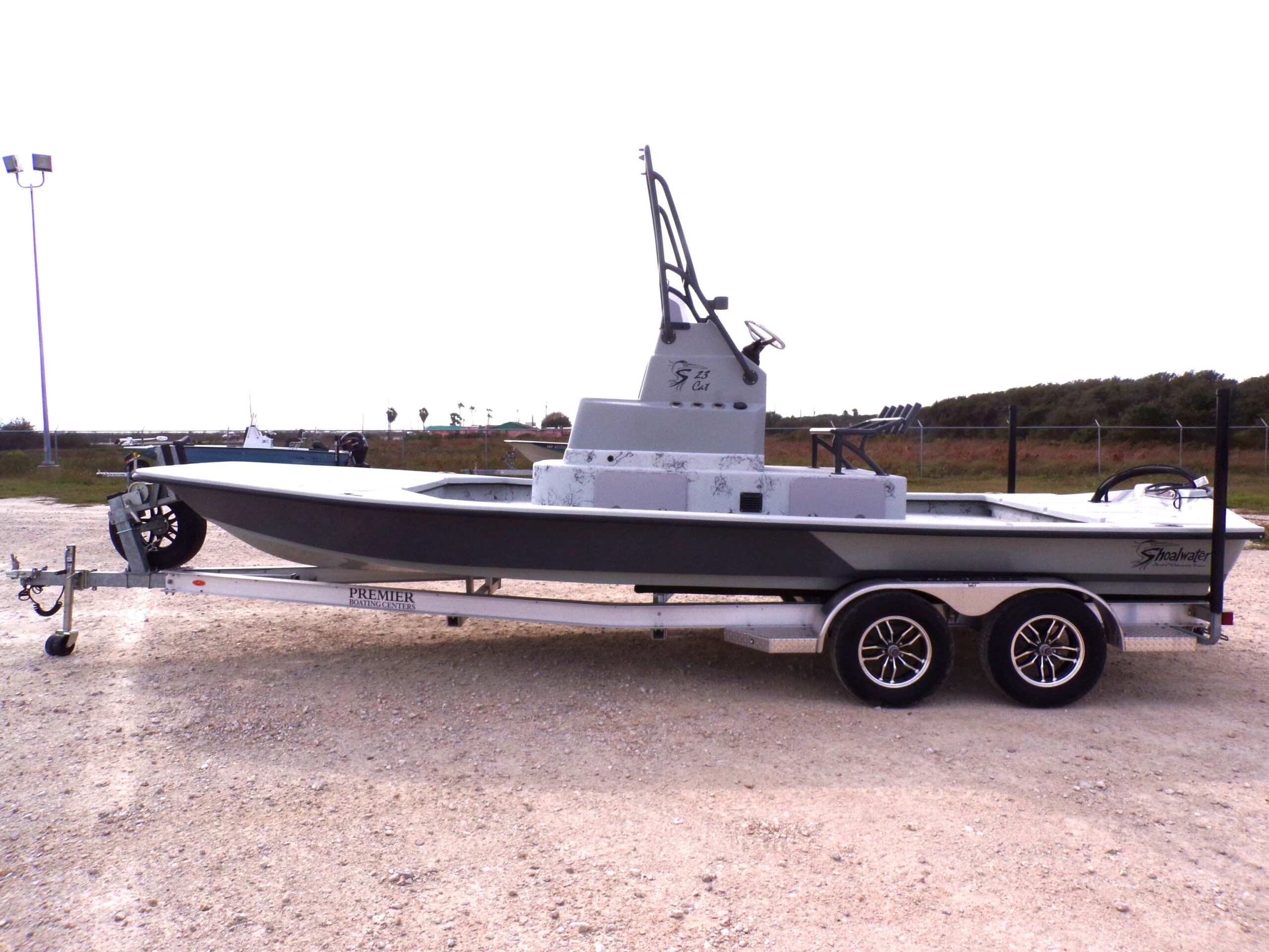 The 2025 Shoalwater 23 Cat is a 23-foot 8 inch catamaran-style bay boat designed for anglers who demand performance, versatility, and premium features. Powered by a Yamaha engine, this model features an elevated console, remote fill & cylinder, a livewell pump with screen, livewell overflow pipe, and battery switch, making it perfect for inshore fishing and recreational boating.