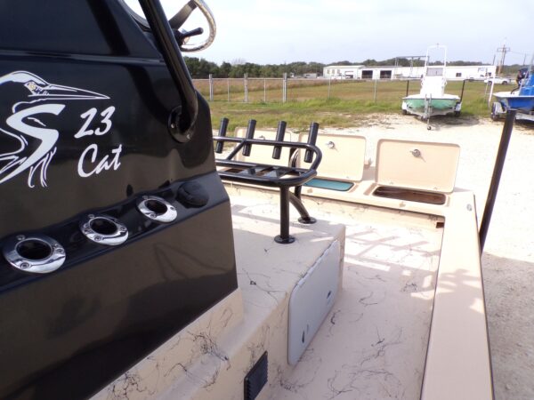 The 2026 Shoalwater 23 Cat is a 23-foot 8 inch catamaran-style bay boat designed for anglers who demand performance, versatility, and premium features. Powered by a Yamaha engine, this model features an elevated console, remote fill & cylinder, a livewell pump with screen, livewell overflow pipe, and battery switch, making it perfect for inshore fishing and recreational boating.