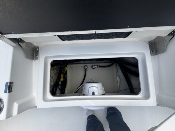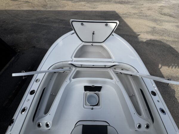 Livewells & Fish Boxes: Twin livewells, large insulated fish storage — serious fishability for bay and offshore trips.