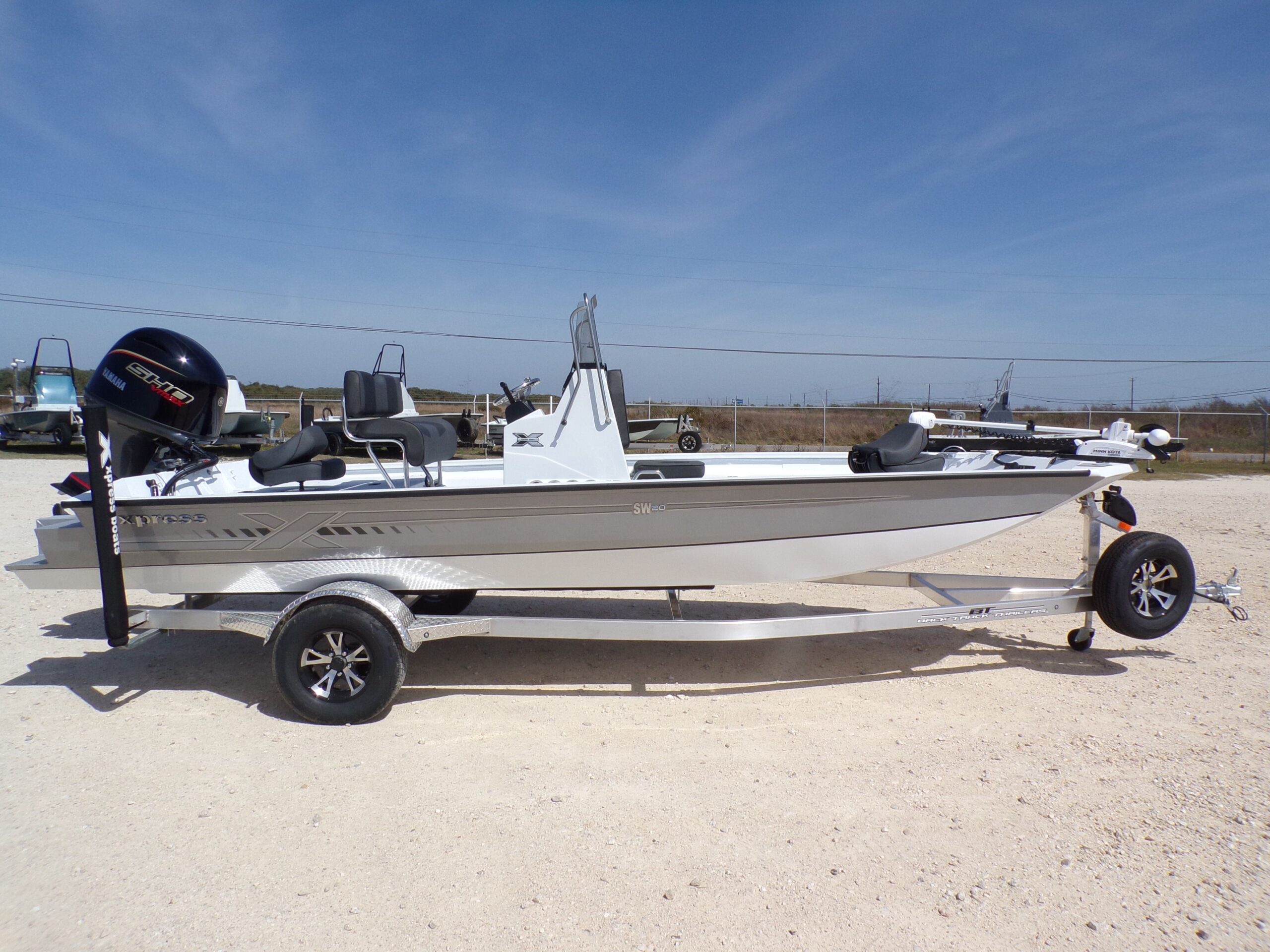 The wide, stable hull offers a smooth, dry ride and plenty of room to fish, making it perfect for inshore, bay, and flats fishing. Whether you’re sight-casting the flats or running the bay, this Xpress is designed to handle it all. It sits on a BackTrack aluminum trailer, making towing and launching easy and worry-free.